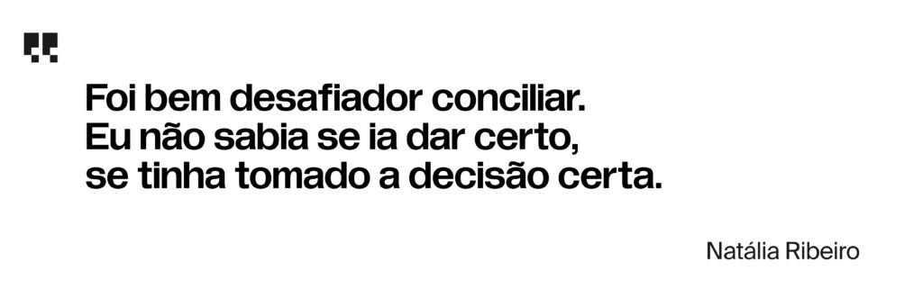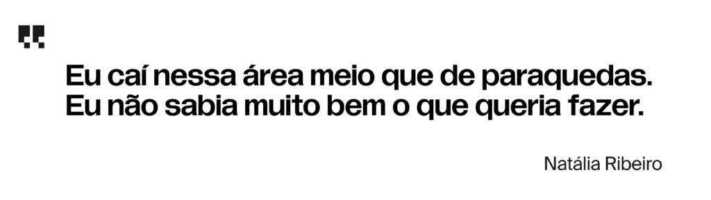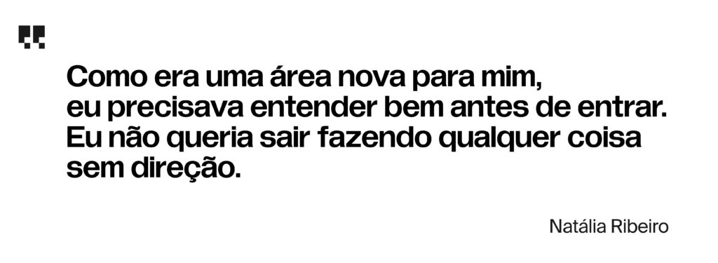Em dois anos, saiu de júnior para pleno. Mas, com o tempo, ela foi percebendo que não era isso o que queria. O ponto de virada veio de uma descoberta: no meio da rotina como designer, Natália começou a se interessar por uma parte que não era exatamente o design.