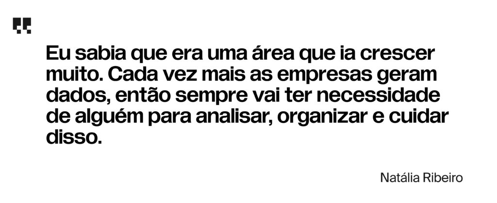 O interesse por dados vinha de anos atrás, reforçado pelas suas experiências profissionais. O que mudou foi a forma como Natália passou a olhar para isso: como um caminho possível.