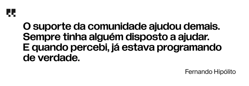 O início não foi fácil. Fernando não vinha da área e sentiu o choque de começar do zero. Mas o formato da TripleTen, com foco em projetos reais e prática constante, manteve a motivação. “O suporte da comunidade ajudou demais. Sempre tinha alguém disposto a ajudar. E quando percebi, já estava programando de verdade.”
