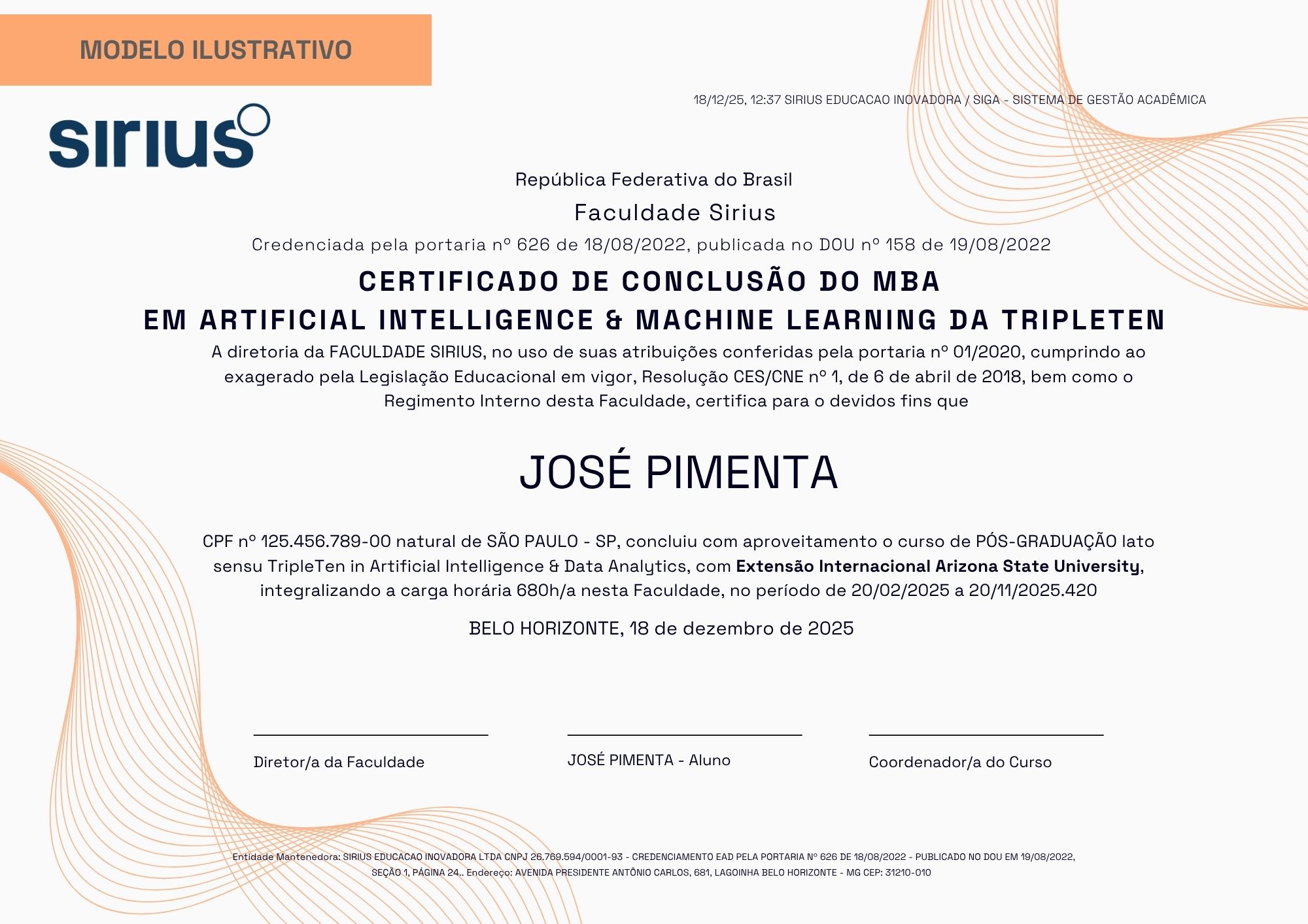 MBA em Ciência de Dados & Machine Learning pela TripleTen (Reconhecido pelo MEC)