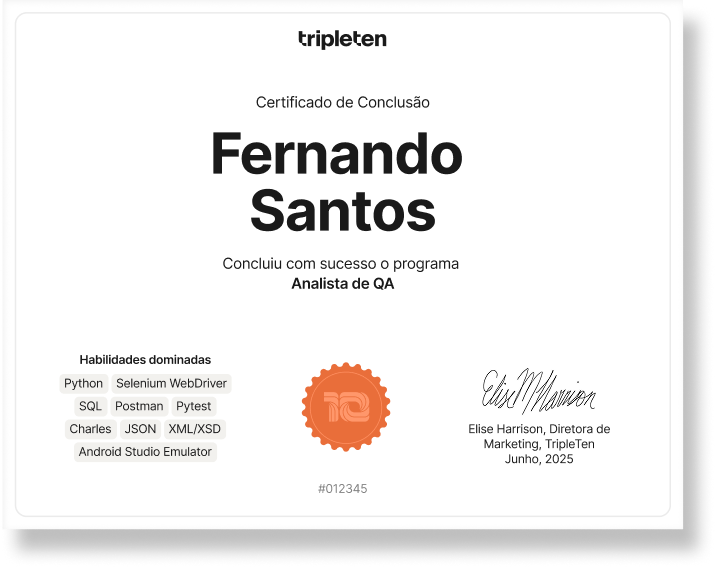 Profissional nível júnior. Este é você após concluir o bootcamp de "Analistas de QA".