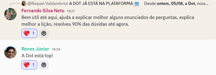 Feedback real dos nossos alunos sobre a Dot